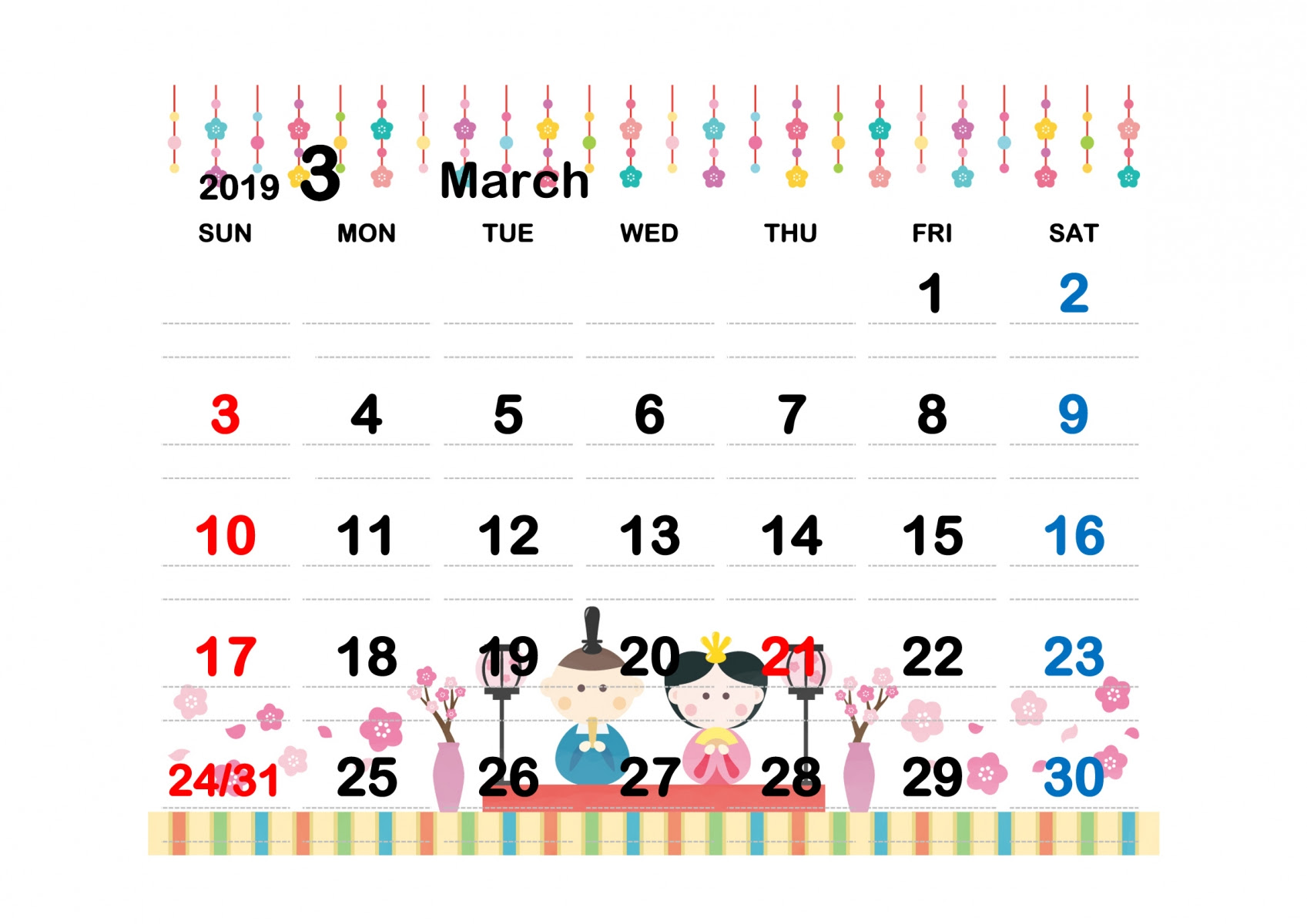 無料イラスト 21年カレンダー横 3月 かわいい季節イラスト